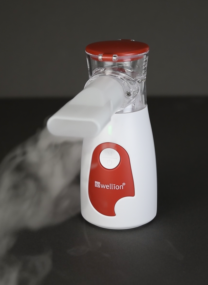 Der Wellion MESH-INHALATOR kombiniert die Merkmale eines tragbaren Aerosolerzeugungsgeräts: handliches Format, geringes Gewicht sowie eine batteriebetriebene Nutzung.