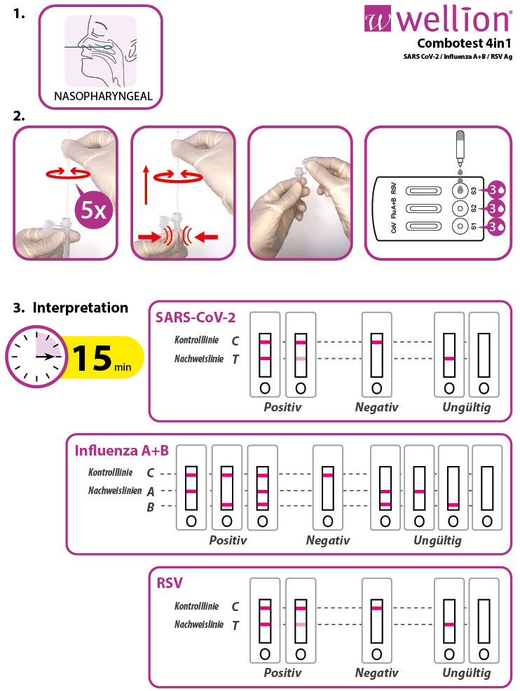 - Kombinationstest zum Nachweis von SARS-CoV-2, Influenza A+B und RS-Viren