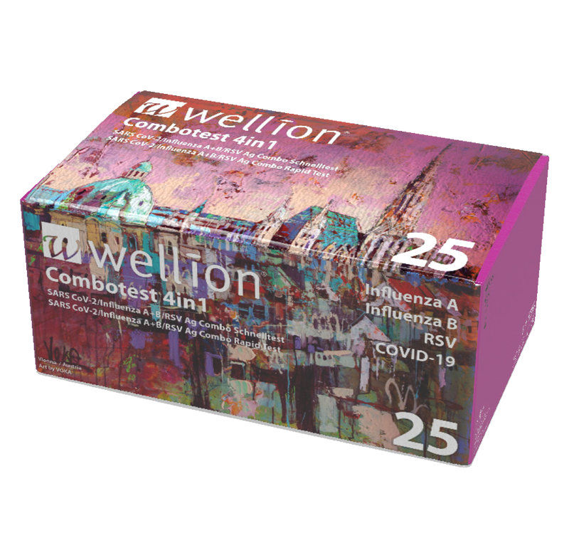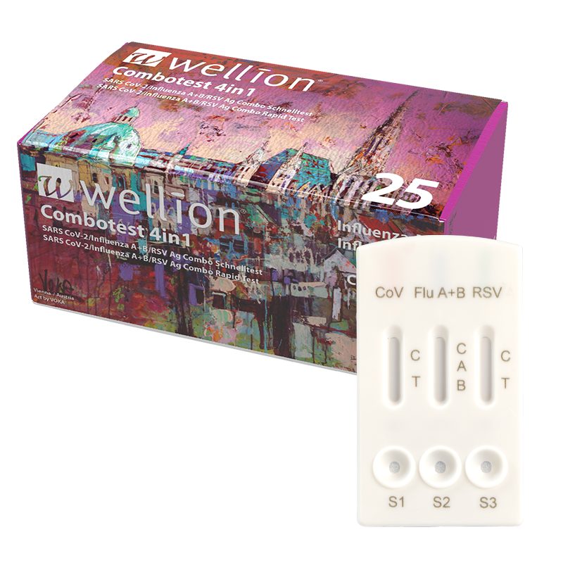 Der Wellion Combotest 4in1 ist ein praktischer Schnelltest, der nicht nur COVID-19 sondern auch Influenza A+B und RSV erkennen kann. Mit nur einem Nasen-Rachen-Abstrich kann zuverlässig und in nur 15 Minuten festgestellt werden, welche der vier Infektionen, die Symptome verursacht. Damit kann mit der konkreten Behandlung sofort begonnen werden.